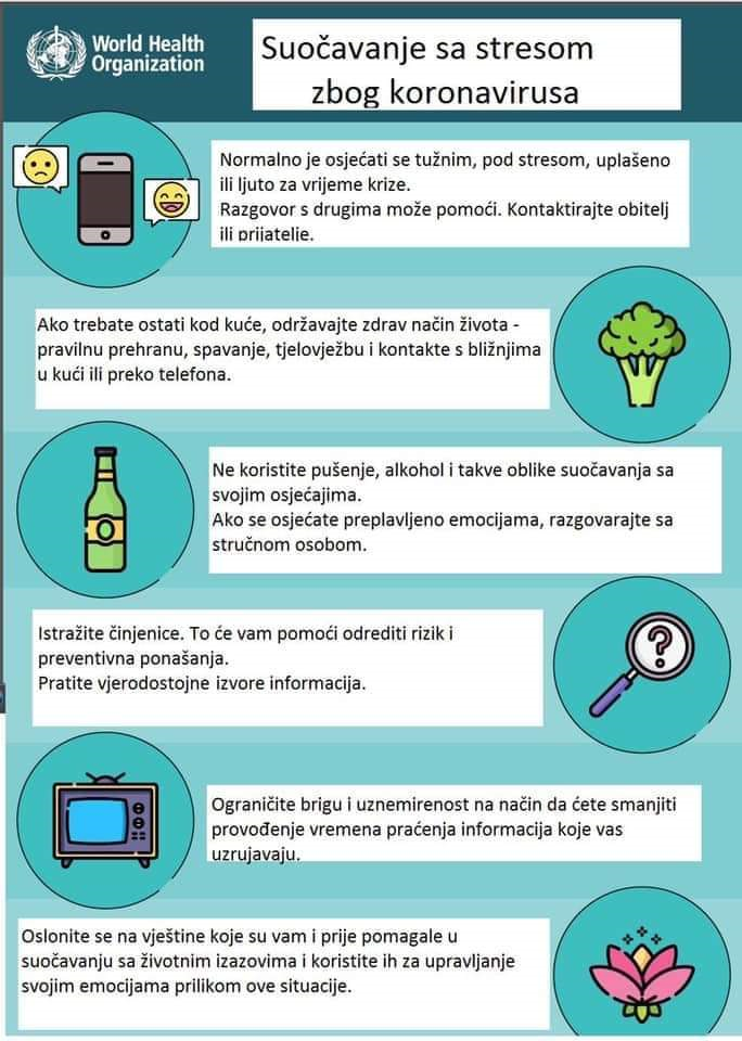 Svjetska zdravstvena organizacija donijela je nekoliko preporuka kako se ponašati i pomoći si u suočavanju sa stresom od koronavirusa: