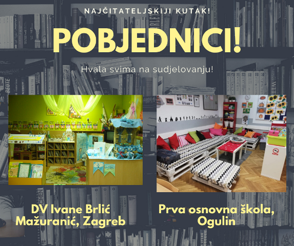 U natječaju za Najčitateljskiji kutić sudjelovali su vrtići i osnovne škole s područja cijele Hrvatske koji su uložili mnogo truda i mašte da osmisle kutak u svom prostoru u kojem će provoditi svoje slobodno vrijeme, čitajući knjige i međusobno se družeći. Prvo mjesto osvojio je 3.b razred Prve osnovne škole iz Ogulina!