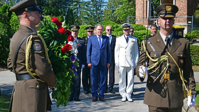 U Zagrebu na gradskom groblju Mirogoj, izaslanstvo MORH-a i OSRH predvođeno državnim tajnikom Ministarstva obrane Tomislavom Ivićem i načelnikom Glavnog stožera OSRH admiralom Robertom Hranjom položilo je vijence na posljednjem počivalištu ratnog ministra obrane i prvog zapovjednika Zbora narodne garde generala Martina Špegelja, ministra obrane Gojka Šuška te dosadašnjih načelnika Glavnog stožera stožernog generala Petra Stipetića, stožernog generala Zvonimira Červenka i generala zbora Imre Agotića.