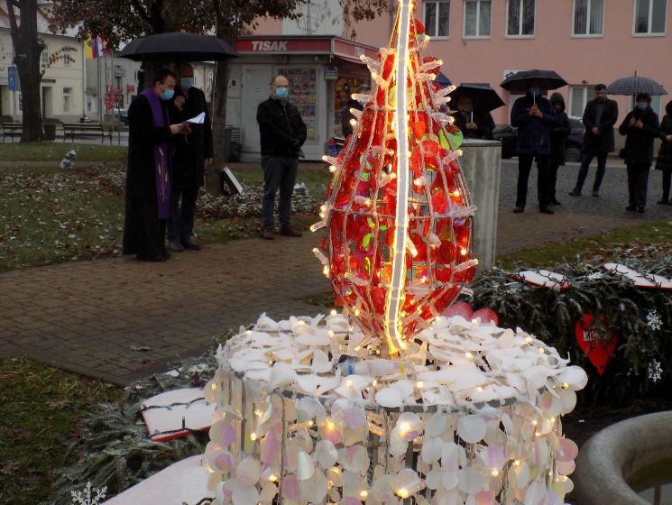 Malobrojni vjernici su se zatim uputili u gradski Park kralja Tomislava gdje je održana svečanost paljenja prve adventske svijeće koje su postavljene oko središnje fontane u parku. Vlč. Lovaković je tom prilikom poručio: „Danas palimo prvu adventsku svijeću koja je svijeća proroka i nade . Ona je znak naše čežnje za Bogom i puninom u vremenu kada se brzo gase malene nade a žeđ za konačnim smislom biva sve veća. Ovo je svjetlo i znak naše molitve, ponajviše blagoslova. “ Nakon toga je gradonačelnik Ogulina Dalibor Domitrović u društvu svojih zamjenika zapalio 1. adventsku svijeću.