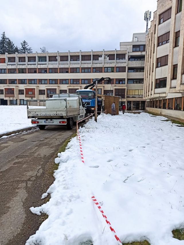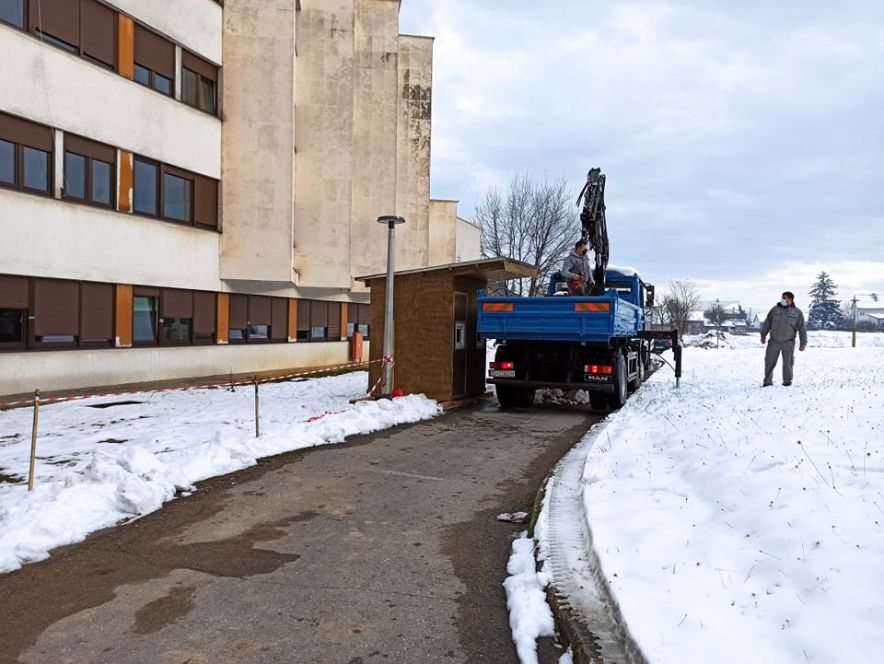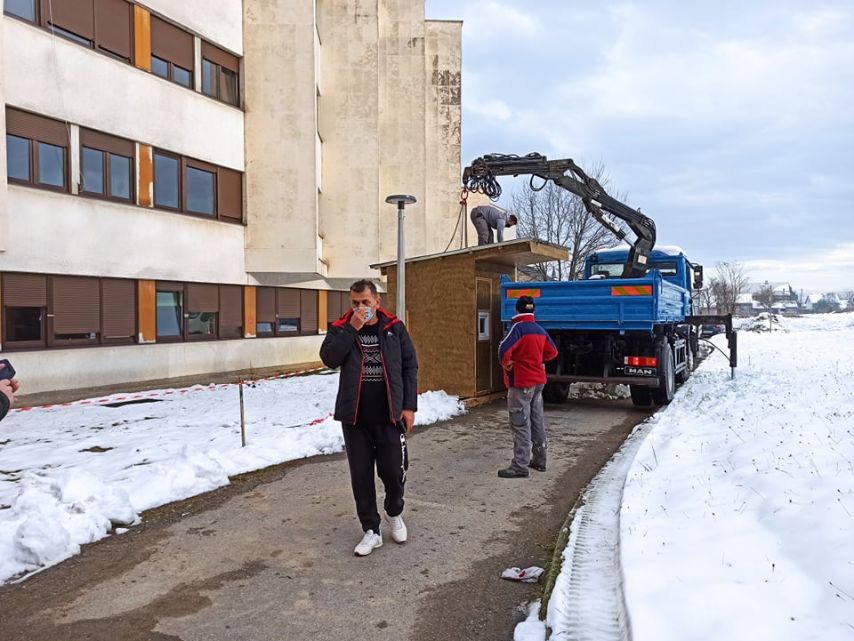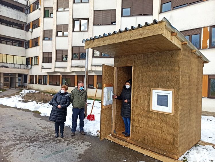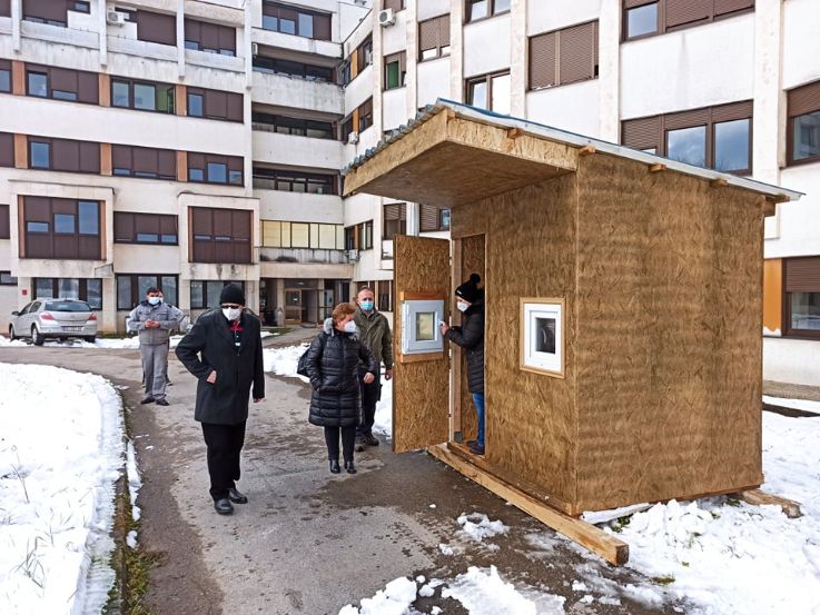 U dvorištu Opće bolnice Ogulin postavljena je kućica za „drive in“ testiranje na koronavirus.