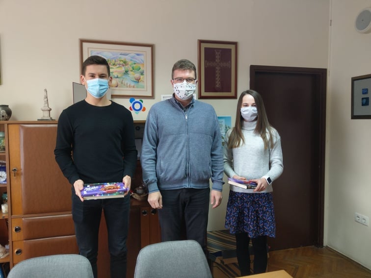 Ravnatelj prof. Hrvoje Magdić primio je u svom uredu u ponedjeljak, 7. prosinca 2020. godine, dvoje učenika koji su ostvarili izvrsne rezultate na Državnom natjecanju iz matematike i njihove mentorice.