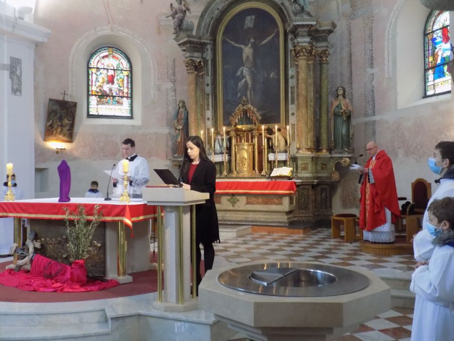 Na blagdan Cvjetnice ili nedjelje Muke Gospodnje misno slavlje predslavio je u župi sv. Križa u Ogulinu župnik vlč. Nikola Prša dok je korizmenim napjevima misu animirao zbor pod vodstvom i uz orguljsku pratnju Marina Mičunovića.