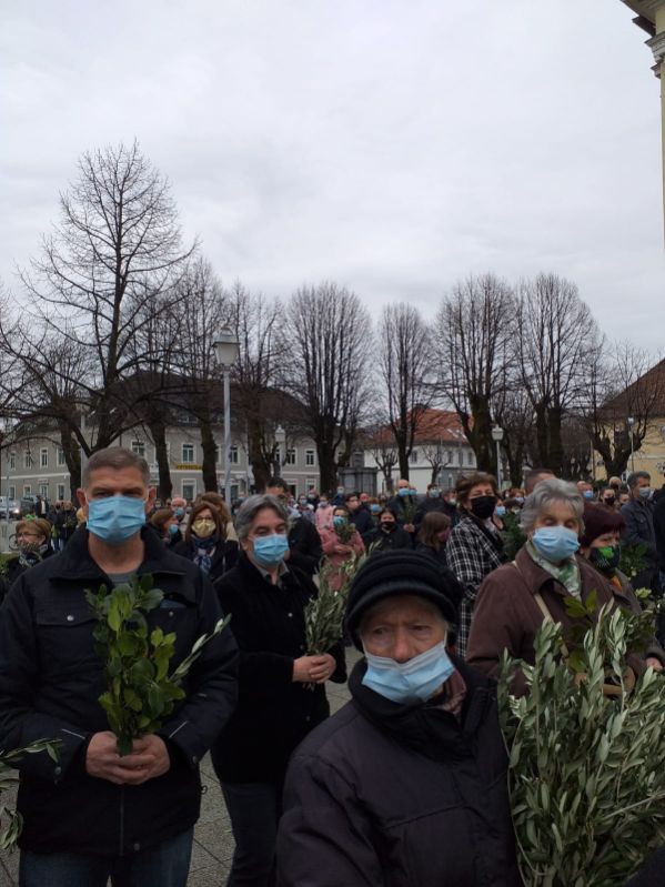Slavlje vazmenog otajstva započelo je blagoslovom maslinovih grančica u Parku kralja Tomislava neposredno ispred crkve gdje je većina vjernika i ostala pratiti bogoslužje poštujući epidemiološke mjese
