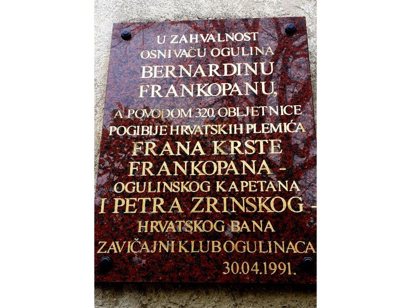 Ovog utorka u rubrici “Utorkom iz muzejskog arhiva” najavljena je 30. obljetnica postavljanja spomen ploče Bernardinu Frankopanu na zgradu palasa Starog grada Ogulina, odnosno Zavičajnog muzeja.