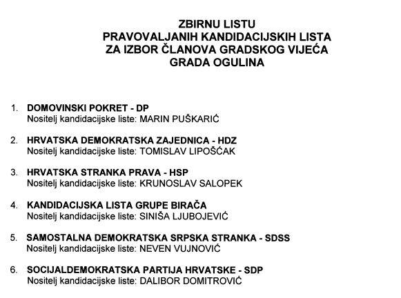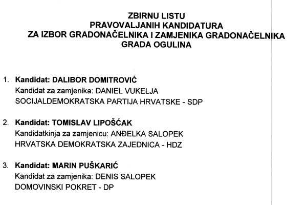 Na stranicama Grada Ogulina objavljene su službene kandidature za nadolazeće lokalne izbore.