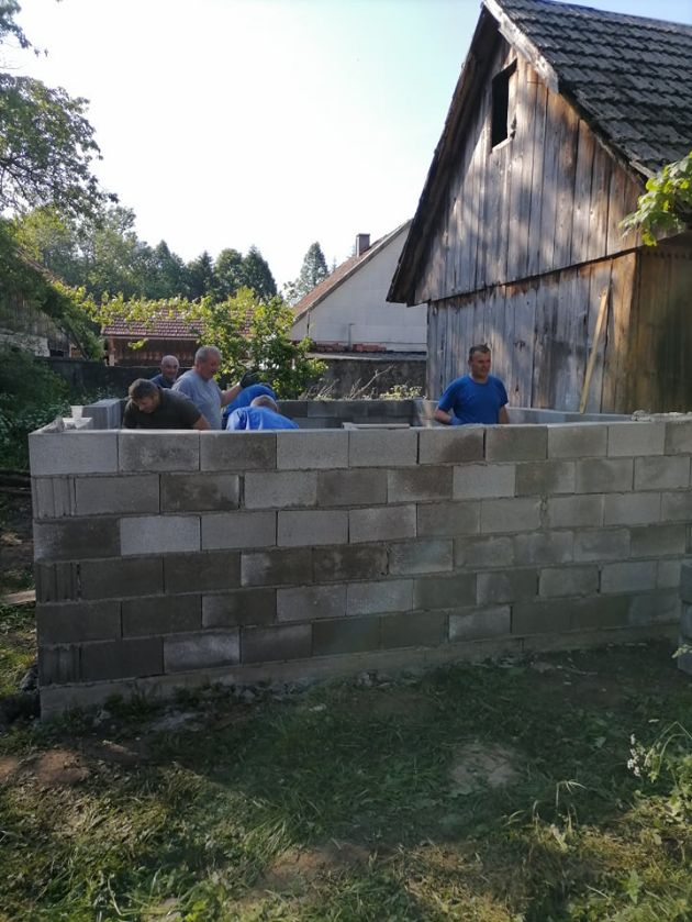 Ivica Paušić sa Željkom Kostelićem, Josipom Puškarićem, Brankom Dujmićem, Marijom Paušićem, Mladenom Paušićem, Vladimirom Paušićem, Dejanom Srdočem i Marijanom Radočajem započeli su zidanje izgorjelog objekta. Navedena marljiva ekipa organizirala je radove, a objekt grade Ivanu Grdiću Petrovom koji je ove godine u požaru ostao bez pomoćne prostorije i sanitarnog čvora.