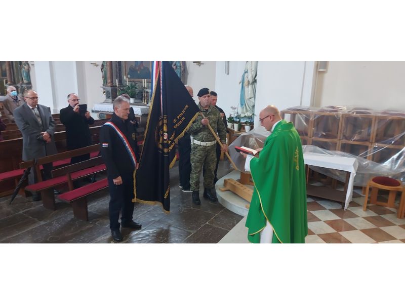 Slijedila je misa u župnoj crkvi sv. Križa koji je predslavio župnik Prša u suslavlju župnog vikara Brune Lovakovića. Vlč. Prša u homiliji je poručio: „Nemojmo nesreće u kojima se znamo zadesiti smatrati kaznama. Kao kršćani i ljudi pozvani smo pomagati bližnjima koje zadesi nevolja, budimo suosjećajni s nevoljnicima. Isto tako ne odgađajmo u životu važne stvari, koristimo božje darove na zemlji da budemo bolji.“ Na koncu je zahvalio braniteljima za sve dobro što su učinili za svoj narod te je blagoslovio zastavu vojne policije.