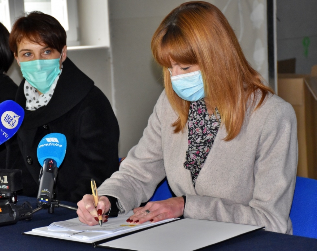 Potpisivanje Ugovora o dodjeli bespovratnih sredstava Programa sufinanciranja provedbe EU projekata na regionalnoj i lokalnoj razini za 2020. godinu, kojeg je danas u ime Karlovačke županije potpisala županica Martina Furdek Hajdin bila je glavna tema današnje konferencije za medije u prostoru Nikola Tesla Poduzetničkog centra na Rakovcu, u Karlovcu.