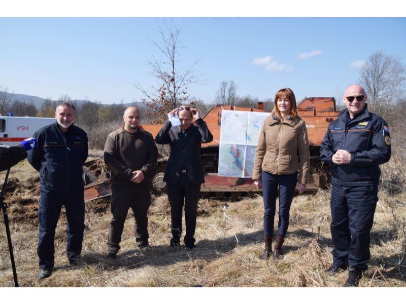 Na radilištu, po projektu razminiranja šuma na području Karlovačke županije “Karlovac KARST”, okupili su se tako predstavnici Ravnateljstva civilne zaštite Ministarstva unutarnjih poslova, predvođeni ravnateljem Damirom Trutom, županica Karlovačke županije Martina Furdek Hajdin, predstavnici Hrvatskih šuma, na čelu s voditeljem projekta “Karlovac KARST” Tomislavom Lipošćakom, načelnik Općine Tounj Ivica Sopek te njihovi suradnici, kako bi javnost upozorili na još uvijek prijeteću opasnost od mina na pojedinim područjima Karlovačke županije i Republike Hrvatske.