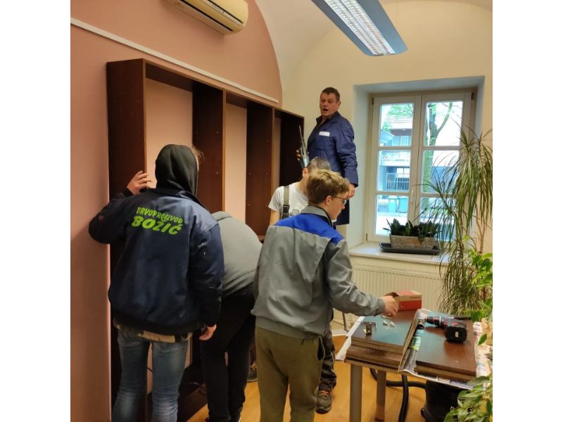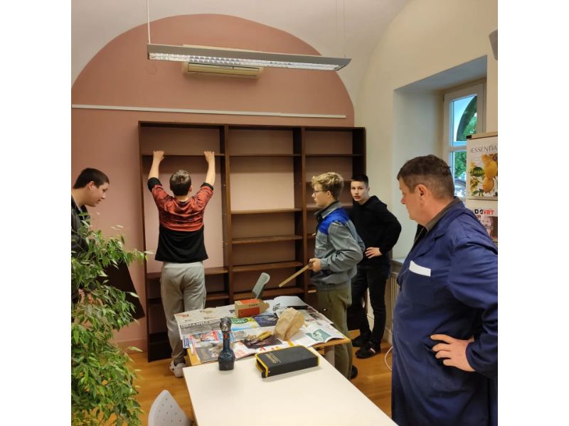 Jučer su učenici 2. razreda Obrtničke i tehničke škole Ogulin sa svojim profesorom Damirom Mihaljevićem prenijeli tri reda zidnih polica iz podrumskog prostora u prostor čitaonice te dva reda zidnih polica u prostor hodnika u neposrednoj blizini dječjeg odjela na prvom katu Knjižnice.