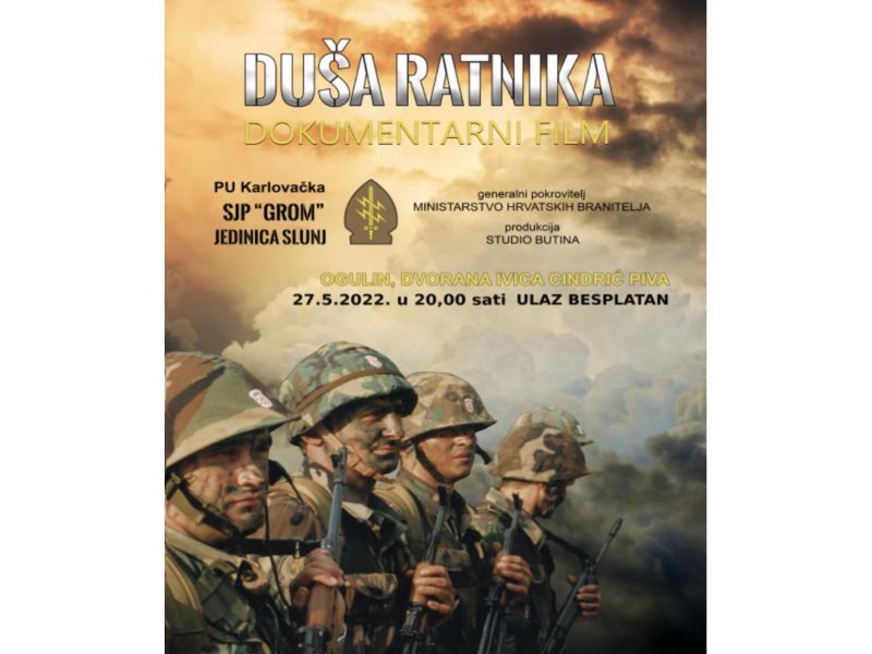 Zajednica Udruga hrvatskih branitelja Ogulina, Tounja, Josipdola, Plaškog i Saborskog, zajedno sa ratnim veteranima Specijalne jedinice policije PU Karlovačke GROM, dijela jedinice iz Slunja organizira uoči proslave Dana državnosti promociju i predstavljanje dokumentarnog filma „Duša ratnika“.