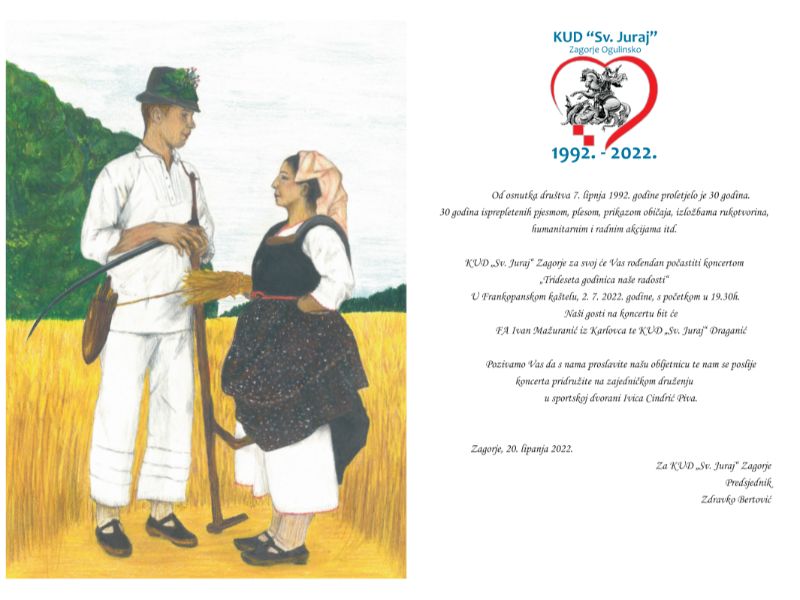 30 godina isprepletenih plesom, pjesmom, prikazom običaja, izložbama rukotvorina, humanitarnim radom i akcijama KUD “Sv. Juraj” obilježit će koncertom “Trideseta godinica naše radosti”.