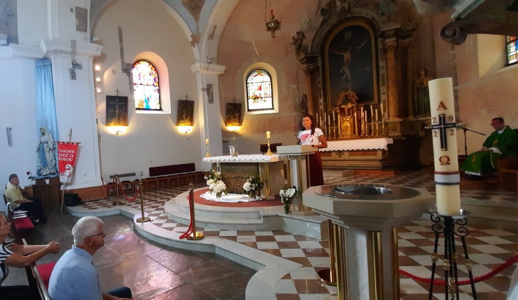 Na koncu mise nazočnim vjernicima obratila se ispred Marijanskog zavjeta za domovinu Marina Garić. „8. zavjetno hodočašće Marijanski zavjet za Domovinu započelo je u subotu 11. lipnja u Osijeku i završit će nakon 75 dana hoda cijelom Hrvatskom, nakon prijeđenih oko 1700 kilometara, u Dubrovniku 24. kolovoza. Sada je upravo započeo peti tjedan u ruti dugoj 161 km od Generalskog Stola preko Ogulina, Vrbovskog i Mrkoplja do Novog Vinodolskog. U 75 dana ćemo prijeći 1700 km od Osijeka do Dubrovnika. Hod, molitva i pjesma glavne su značajke naše hodanje kojom slavimo našu domovinu, branitelje i slavimo Boga. Ako već ne možete s nama hodati, pridružite nam se u molitvi,“ poručila je tajnica Bratovštine Marijanski zavjet za domovinu Marina Garić.