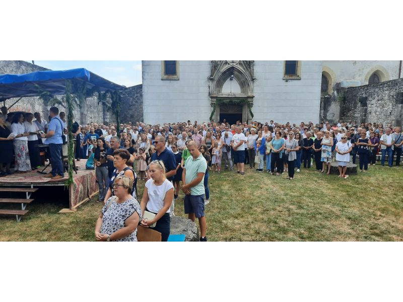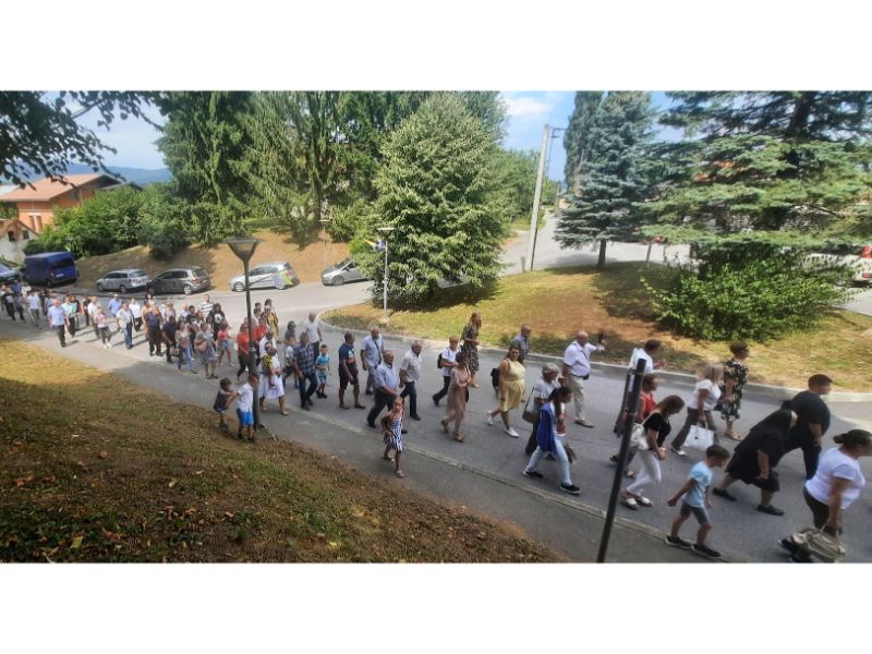 Misa je započela svečanom procesijom uz sudjelovanje brojnih laičkim društava sa svojim zastavama od stare škole pa preko jednog od simbola Oštarija Marmontovog mosta pa do zidina nekadašnje velebne katedrale unutar čijih je služena sveta misa.