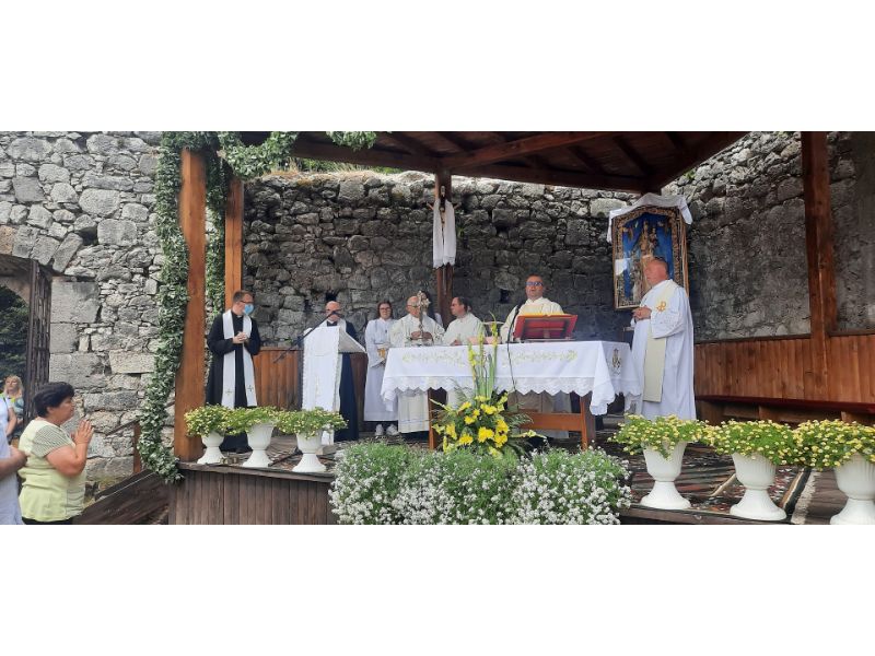 Središnju hodočasničku misu na blagdan Velike Gospe u svetištu Gospe od Čudesa u Oštarijama predslavio je u 11 sati župnik Plaškog i Saborskog don Goran Antunović u suslavlju mjesnog župnika i čuvara svetišta Marija Vazgeča i više svećenika Ogulinskog dekanata.