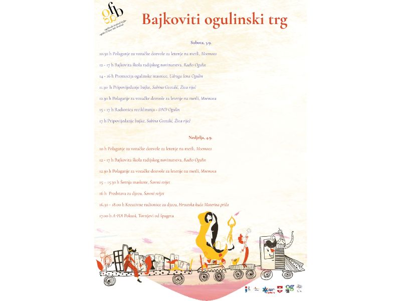 Ogulinski festival bajke u gostima će se predstavljati dva dana uz kazališnu predstavu, radionice DND Ogulin, Radio Ogulina, Udrugu žena Ogulin te pripovijedanje Sabine Gvozdić.