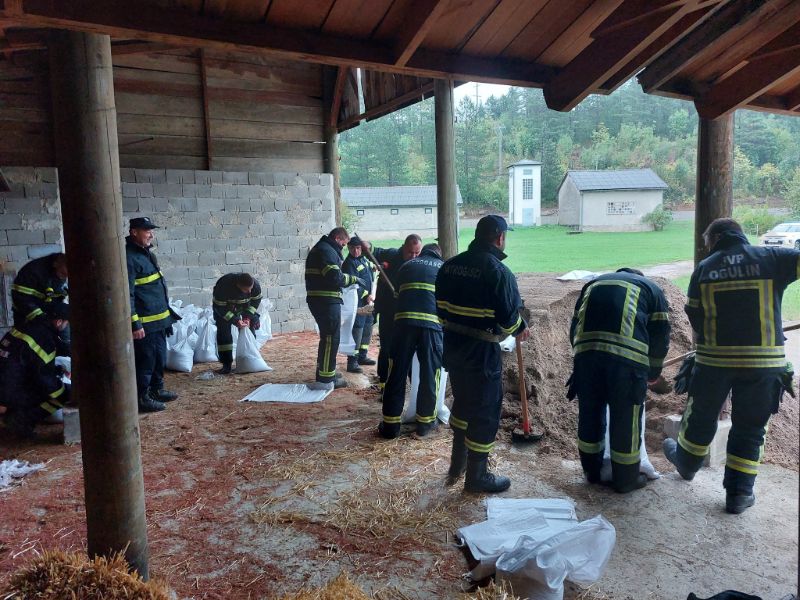 Tijekom subote aktivirani su vatrogasci Područne vatrogasne zajednice Ogulin na punjenju vreća s pijeskom, dostavom na potrebite lokacije i štićenje objekata, spašavanju s vodenih površina, izvlačenja vozila iz vode te ispumpavanja. Ukupno je tijekom subote bio angažiran 41 vatrogasac s 9 vozila. Tome treba dodati i 11 vatrogasaca koji su bili na obrani od poplava u Karlovcu. Vatrogasci su napunili gotovo 2000 vreća s pijeskom i uz pomoć privatnih teretnih vozila prevezli do objekata koji su se štitili. Tijekom nedjelje izvršeno je 20-ak ispumpavanja objekata, prijevoza ljudi čamcem, ispiranja prometnice… VOC Ogulin zaprimio je preko 150 poziva građana, koji su tražili pomoć te dobivali potrebne informacije i savjete.