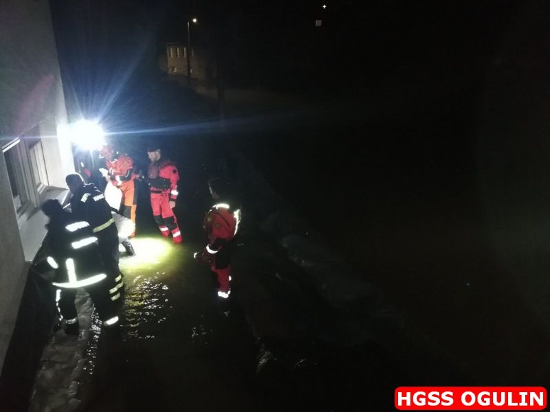 Nakon cjelodnevnih akcija članovi Hrvatske gorske službe spašavanja stanica Ogulin intervenirali su nekoliko puta i tijekom subotnje noći. Ogulinci su se ipak našli ugroženi sa subote na nedjelju te su iz GSS-a u dva navrata čamcima prevozili pumpe i agregate, a na jednu lokaciju i vreće s pijeskom.