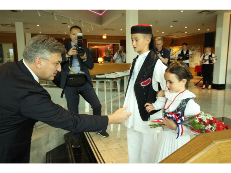 Oko 90 članova i prijatelja Zajednice dočekalo je predsjednika vlade Andrej Plenkovića u predvorju gdje je održan kratki ceremonijal program uz intoniranje nacionalne himne Amerike i Hrvatske, koje su izveli TS „Svemir“. Program je dopadljivo vodila Bernadette Luketich-Sikaras a govornici su bili Edward W. Pazo, Franjo Bertović i predsjednik Vlade Andrej Plenković. Predsjednik vlade RH obratio se je nazočnima s riječima zahvale za veličanstven prijem i 128. obljetnicu Hrvatske bratske zajednice koja je čuvala, i očuvala, hrvatske kulturne i tradicijske vrijednosti te domoljublje našeg naroda u svijetu. Osvrnuo se je i na politička događanja u Europi i međunarodnom poretku.