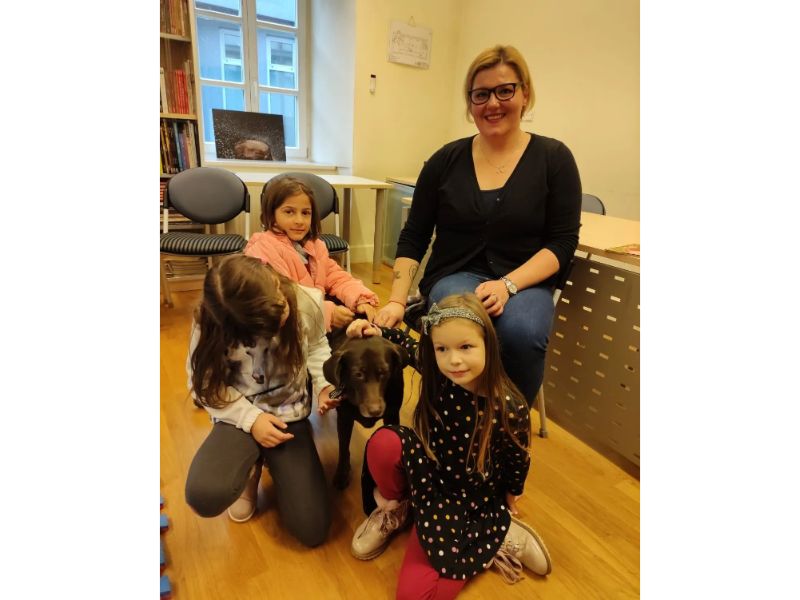 Zajedno sa svojim psom Sašom, glavnom junakinjom slikovnice “Saškine čokoladne pustolovine”, u Knjižnici Ogulin gostovala je Sanja Graša.