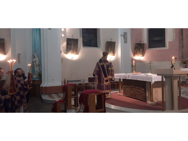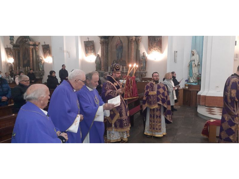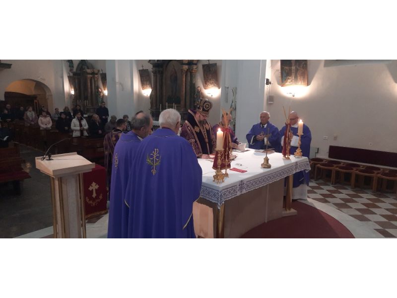 Vladika Stipić na početku je uz domaćine pozdravio o. Andriju Kekića iz Križevačke eparhije koji s ljubavlju vrši službu župnika u Gospićko-senjskoj biskupiji i da je ova misa prilika da se ogulinski vjernici upoznaju s bogatstvom grkokatoličke liturgije. „Nisu svi katolici rimskog obreda jer postoji i drugi obredi kao koptski, etiopski, sirijski itd. koji pokazuju da se kroz različitosti obreda učvrstilo jedinstvo s rimskog crkvom. Iako imamo istočni obred, mi pripadamo katoličkoj crkvi i svi smo jedna crkva,“ istaknuo je vladika Stipić te podsjetio na 400 godina dugu povijest Križevačke eparhije. Glede aktualnih ratnih zbivanja u Ukrajini preporučio je molitvu da se neprijatelj promijeni i obrati. Ljubav, mir i zajedništvo ljude čine boljima. Isus nam je svim pokazao kako u život unijeti harmoniju. Pričešćivanje na koncu mise je održano na oba obreda.