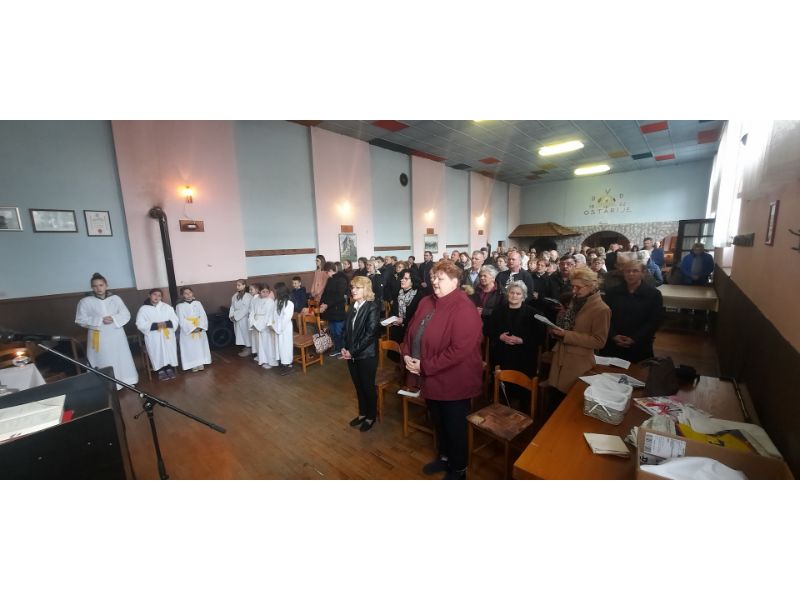 Blagdan Blagovijesti ili kako ga lokalni vjernici po tradiciji zovu Druga svetica proslavljen je u subotu, 25. ožujka u Oštarijama i po prvi puta u zgradi Vatrogasnog doma, koja je za vrijeme obnove crkve od potresa privremeni dom oštarskih vjernika. Ove godine obilježava se 564. obljetnica od bule pape Pia XI. ovom svetištu kome se na marijanske blagdane vjernicima nudi oprost grijeha. Misno slavlje predslavio je čuvar oštarskog svetišta i župnik Oštarija, Zagorja i Modruša Mario Vazgeč u suslavlju župnika župe sv. Križa iz Ogulina Nikole Prše i Josipdola i Cerovnika dr. Željka Blagusa. Misu je liturgijom glazbom animirao župni zbor župa Oštarije i Zagorje.