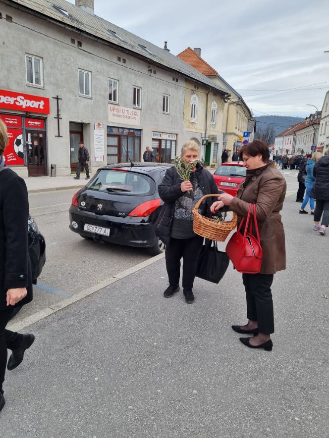 Zajednica žena HDZ Katarina Zrinski Ogulina danas je na Trgu Petra Stipetića u rekordnom roku podijelila maslinove grančice građanima Ogulina za nadolazeći blagdan Cvjetnice.