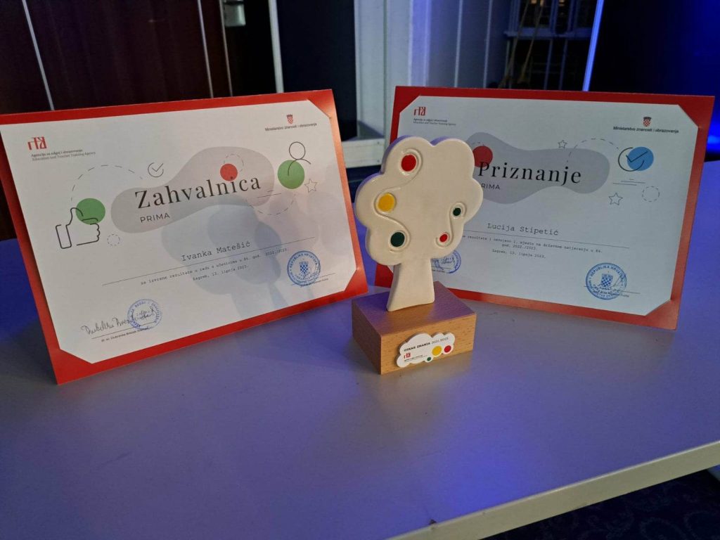 U Zagrebu su jučer uručene prestižne nagrade Oskar znanja učenicima koji su osvojili prva mjesta na državnim natjecanjima u znanja, glazbi i plesu, kao i zahvalnice mentorima za predan rad s učenicima. Među dobitnicima ove važne nagrade bila je i učenica Gimnazije Bernardina Frankopana Ogulin Lucija Stipetić, državna prvakinja iz matematike, kao i njezina mentorica prof. Ivanka Matešić!