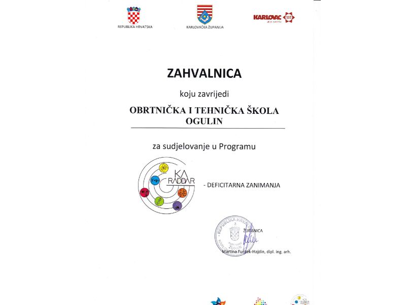 Obrtnička i tehnička škola Ogulin ove školske godine uspješno je provela projekt Ka RADDAR usmjeren potrebama tržišta rada i deficitarnim zanimanjima.