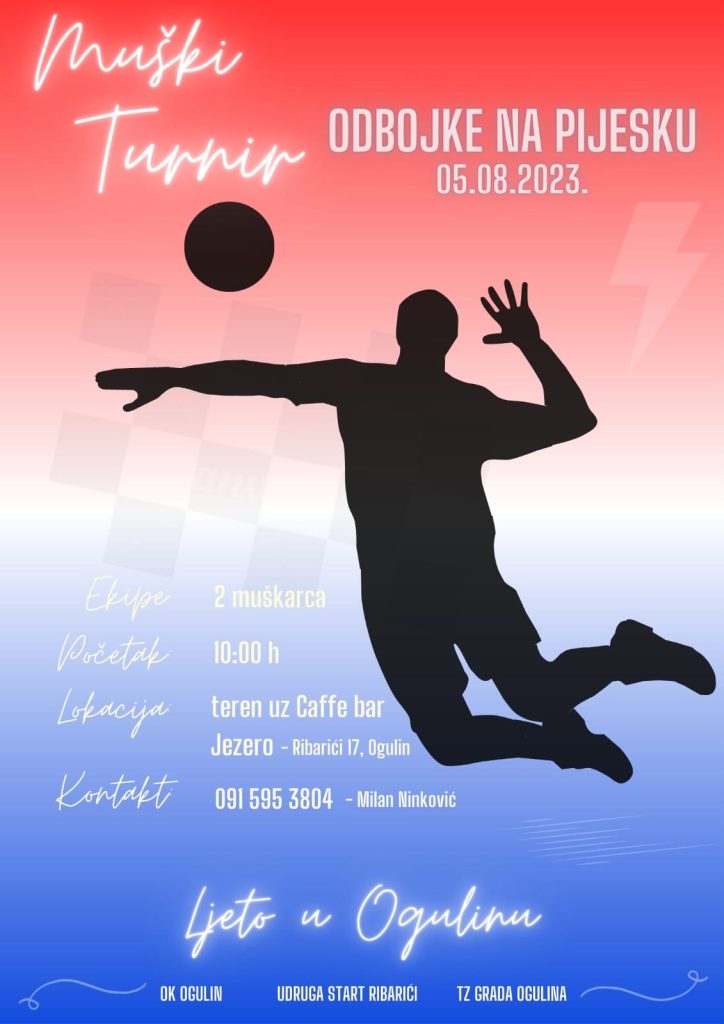 U organizaciji Odbojkaškog Kluba Ogulin,Udruge Start Ribarići, Turističke zajednice grada Ogulina i Hrvatskog Časničkog Zbora grada Ogulina u SUBOTU 5.8. održat će se četvrti ovogodišnji turnir odbojke na pijesku,koji je ujedno i 7. tradicionalni turnir povodom Oluje.