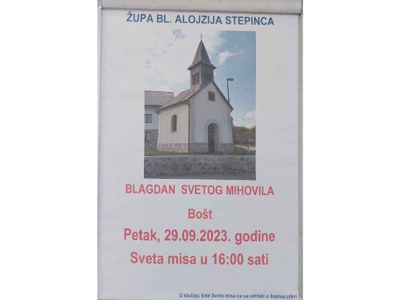 U ogulinskoj župi bl. A. Stepinca, na Boštu, kod kapele sv. Mihovila 29. rujna, u 16 sati održat će se sveta misa povodom Sv. Mihovila.