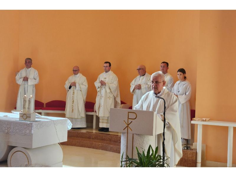 „ Posveta crkve značajna je jer u njoj boravi Bog i tu se uprisutnjuje njegova žrtvana križu, dok je misa nekrvna žrtva za naše spasenje. U božjem hramu slavimo žrtvu i spasenje i uskrsnuće. N sudimo jedni druge i ne koristimo silu jer uz nju nema uspjeha, niti u odgoju niti u odnosu ka Bogu. Isus je prema svakom čovjeku pravedan temelje njegovih zasluga. Nastojmo biti zahvalni što ovdje imamo crkvu preko koje Bog dolazi do nas.“ Završnu riječ uputio je na kraju župnik fra Mirko Kralj koji je zahvalio dionicima slavlja i gradu Ogulinu na uređenju parkirališnog prostora oko crkve, a nakon mise održano je druženje vjernika i svećenika ispred crkve uz piće i kolače koje su pripremile domaće župljanke