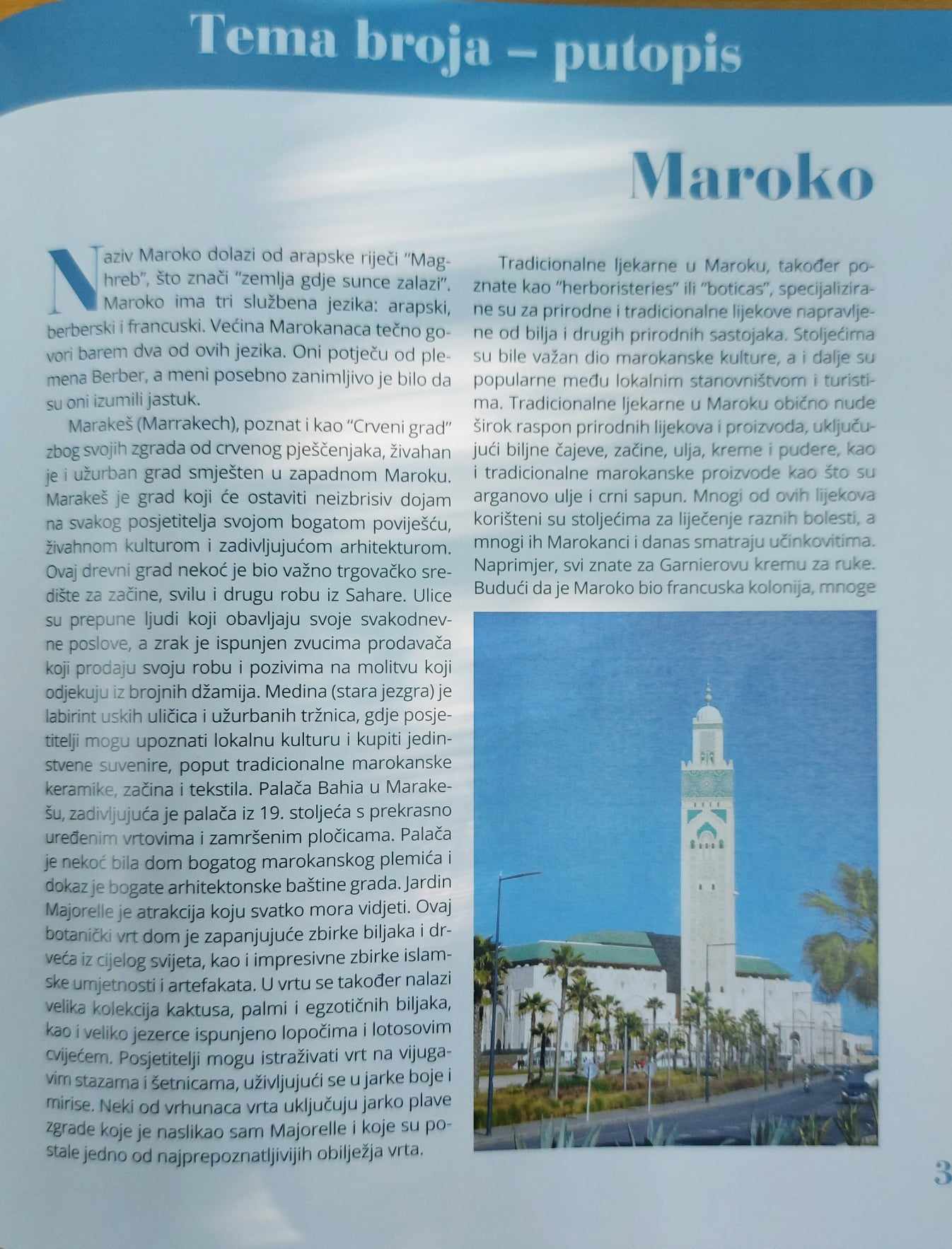 Središnja tema ovog broja su putovanja pa u „Bernardinu“ možete pročitati zanimljive putopise o Maroku, Malti i Engleskoj. Predstavljeni su neki projekti provođeni u nastavi kao i zanimljive terenske nastave, a možete pročitati i rad s kojim je učenica Martina Gračanin pozvana na državnu smotru Lidrano. Čitateljima će biti zanimljivi i osvrti na filmove i knjige, kao i pjesme i fotografije naših učenika. Ovaj broj „Bernardina“ donosi i razgovor s državnom prvakinjom iz matematike Lucijom Stipetić, kao i tekstove oproštaja od prerano preminule nastavnice Zdenke Trbović Janjanin.