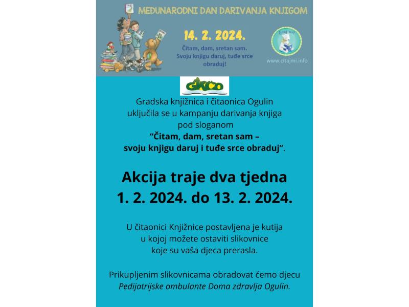 Gradska knjižnica i čitaonica Ogulin uključila se u kampanju darivanja knjiga pod sloganom “Čitam, dam, sretan sam – svoju knjigu daruj i tuđe srce obraduj”.
