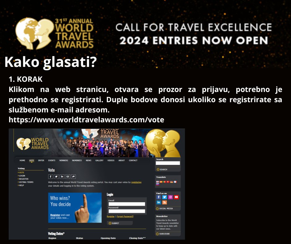 Detaljne upute o postupku glasanja dostupne su na službenoj stranici World Travel Awards: https://www.worldtravelawards.com/vote