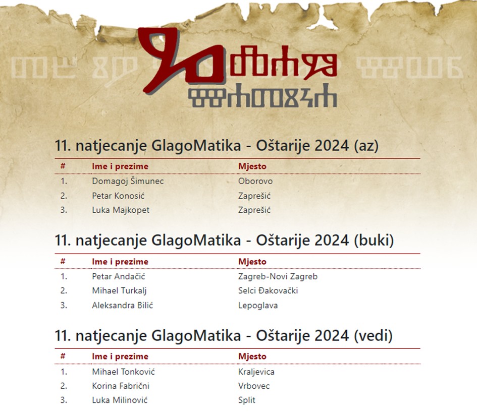 Rezultati natjecanja su dostupni javnosti kroz slikovnu galeriju i na službenoj web stranici GlagoMatika, gdje se mogu pronaći detalji o pobjednicima i ostalim sudionicima.
