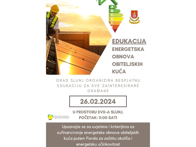 U sklopu nastojanja da se poveća energetska učinkovitost i unaprijedi kvaliteta života u lokalnoj zajednici, grad Slunj organizira besplatnu edukativnu radionicu na temu “Energetska obnova obiteljskih kuća”. Ovaj događaj predstavlja izvrsnu priliku za sve zainteresirane građane koji žele saznati više o uvjetima, kriterijima i mogućnostima sufinanciranja energetske obnove svojih domova.