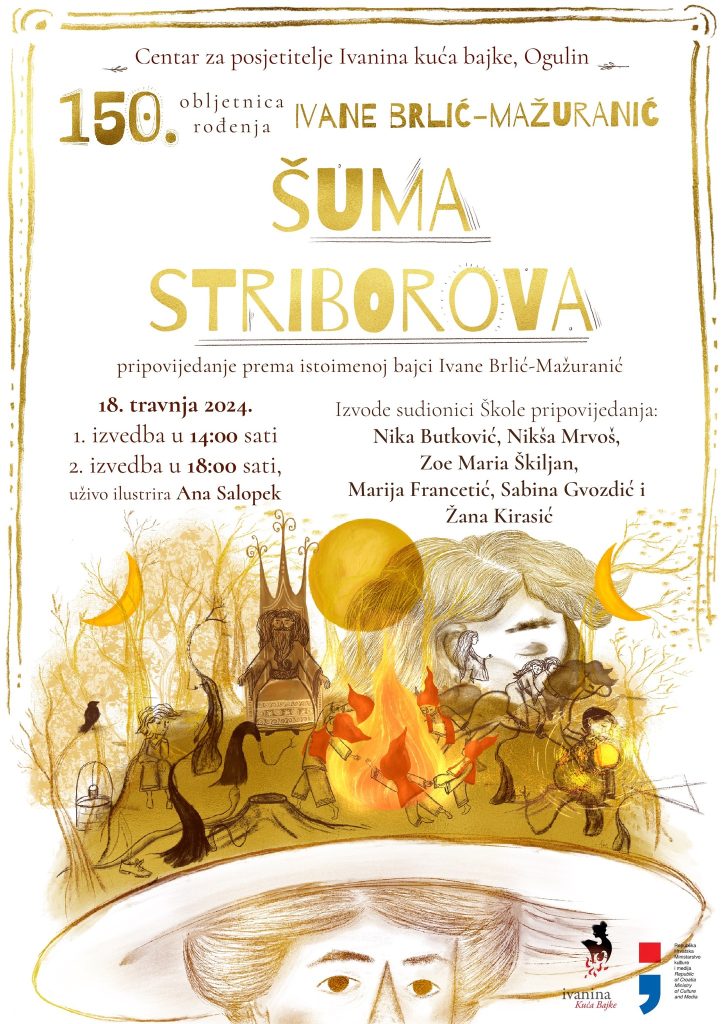 U srcu Ogulina, gdje se stvarnost i mašta isprepliću poput grana stoljetnih šuma, Centar za posjetitelje Ivane Brlić-Mažuranić sprema se obilježiti 150. obljetnicu rođenja jedne od najvećih hrvatskih bajkopisaca. Povodom ovog jubileja, 18. travnja 2024., pripremljene su premijerne izvedbe bajke “Šuma Striborova” u interpretaciji talentiranih polaznika Škole pripovijedanja.