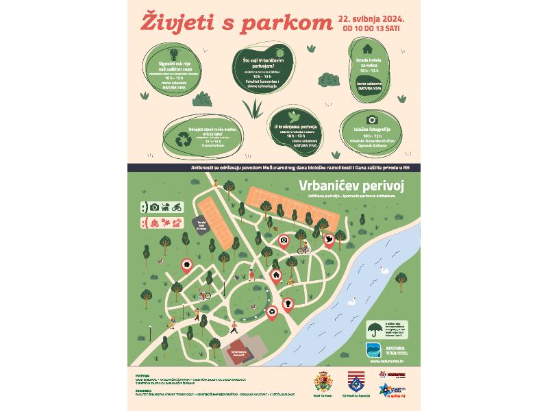 Povodom obilježavanja 22. svibnja, Međunarodnog dana biološke raznolikosti i Dana zaštite prirode u Republici Hrvatskoj, Javna ustanova NATURA VIVA, uz podršku Grada Karlovca i Karlovačke županije, i ove godine, 17. put za redom, u spomeniku parkovne arhitekture Vrbanićevom perivoju organizira manifestaciju „Živjeti s parkom“.
