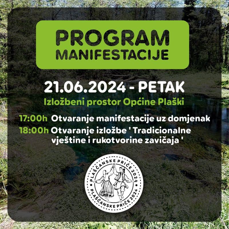 - 17:00 h – Otvaranje manifestacije uz domjenak (Izložbeni prostor Općine Plaški)