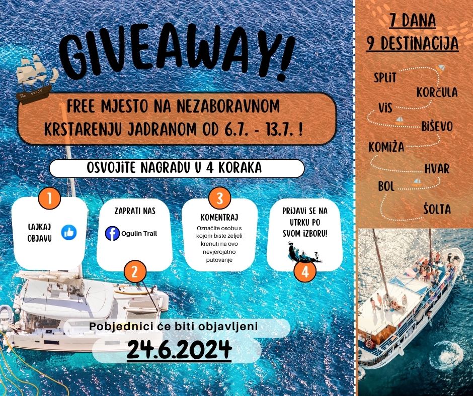 Pridružite se Ogulin Trailu, sudjelujte u utrci i možda baš vi budete sretni dobitnik ovog nezaboravnog krstarenja! Vidimo se na stazi i na moru!
