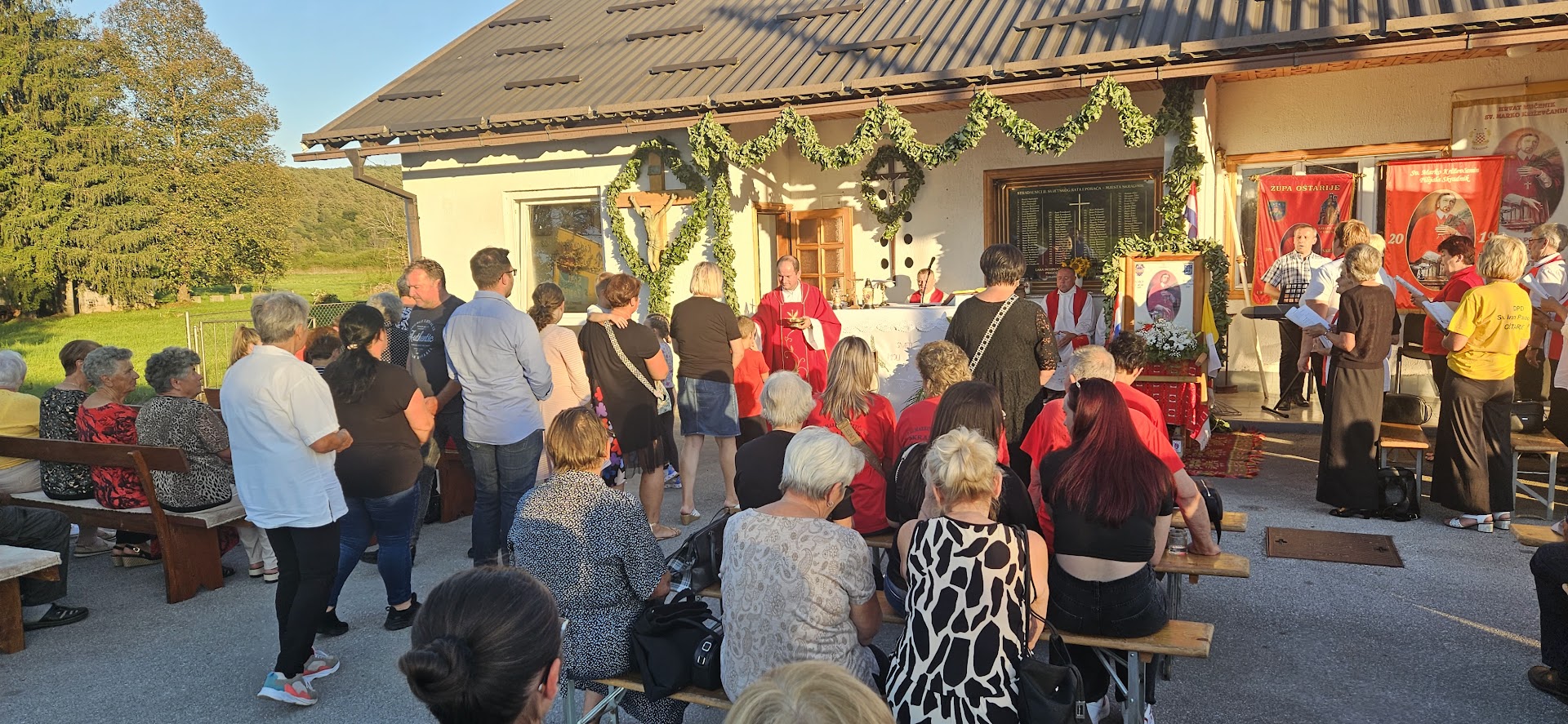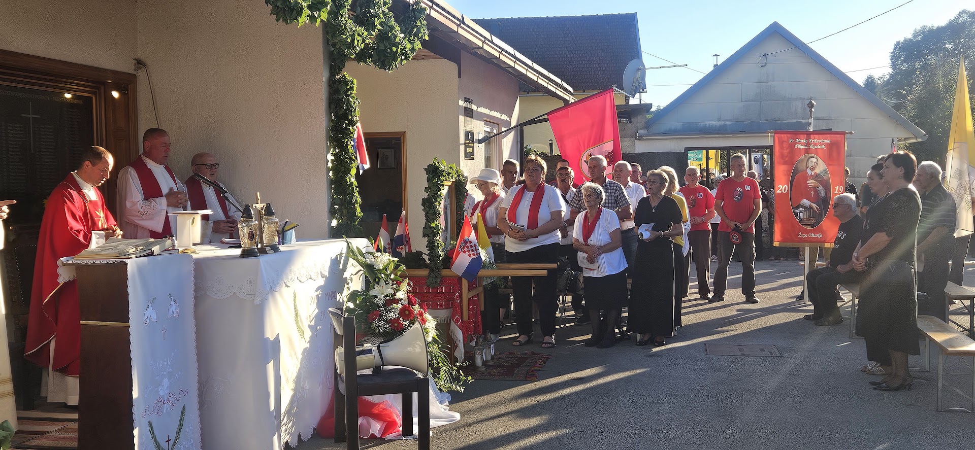 Slavlje je započelo tradicionalnom svečanom procesijom sa stjegovima DPD-a Sv. Marko Križevčanin i župe Oštarije i Cerovnik od osnovne škole do doma sv. Marka. Predvoditelj slavlja vlč. Vazgeč u svojoj je homiliji između ostalog poručio: