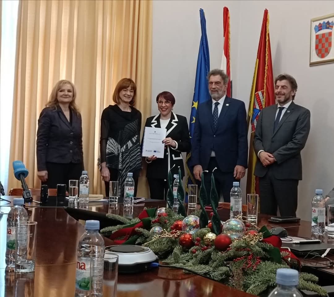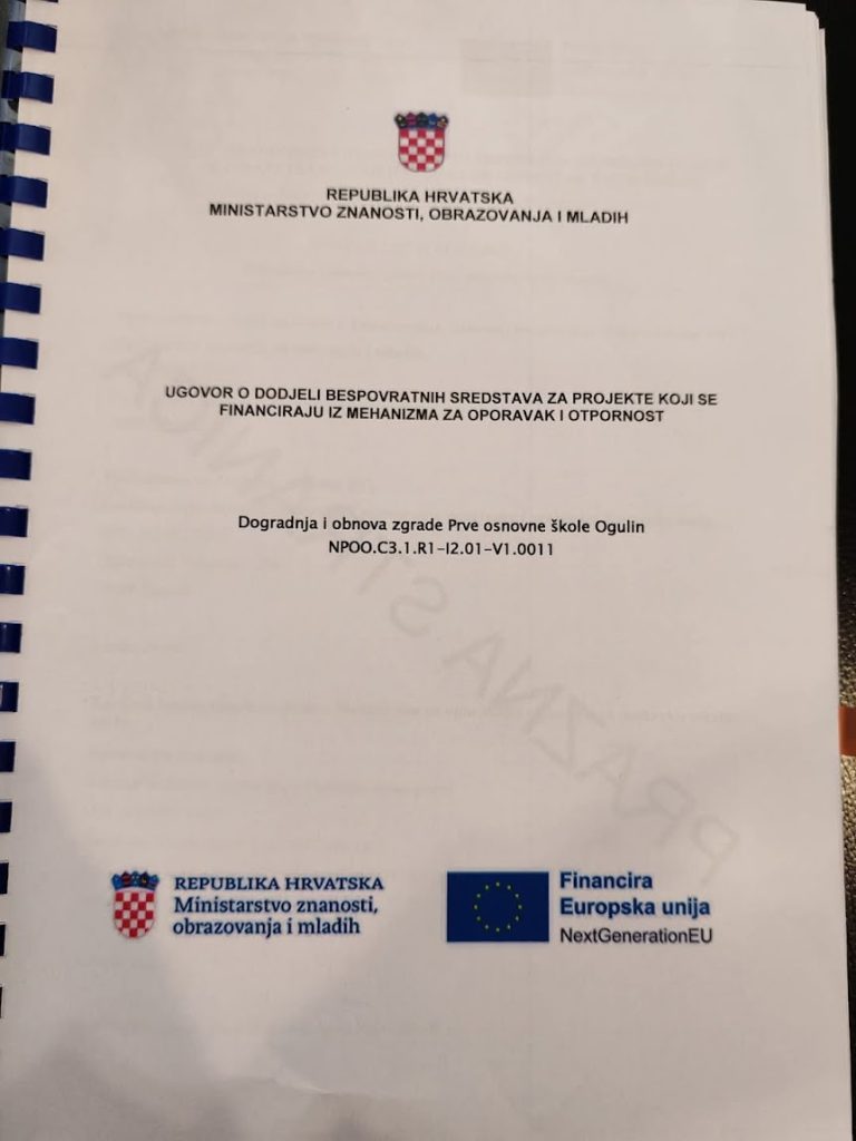 Ugovor su potpisali ravnateljica škole Ivona Rendulić, karlovačka županica Martina Furdek Hajdin i ministar MZOM Radovan Fuchs. Velik dio zasluga pripada zamjenici županice Vesni Hajsan Dolinar kao i bivšem ravnatelju Prve osnovne škole koji su sudjelovali u svim početnim fazama realizacije ovog projekta.