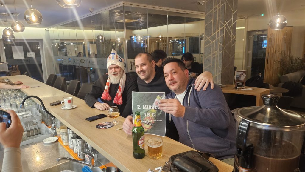Ponedjeljak 3. veljače opet je bio u Gradskoj kavani u znaku druženja ogulinskih kvizaša. Ovaj puta dogovor je bio da se odjenu navijački pošto je cijela Hrvatska bila u znaku dočeka srebrnih na Trgu bana Jelačića. Kao da se ustalio broj ekipa na 9.