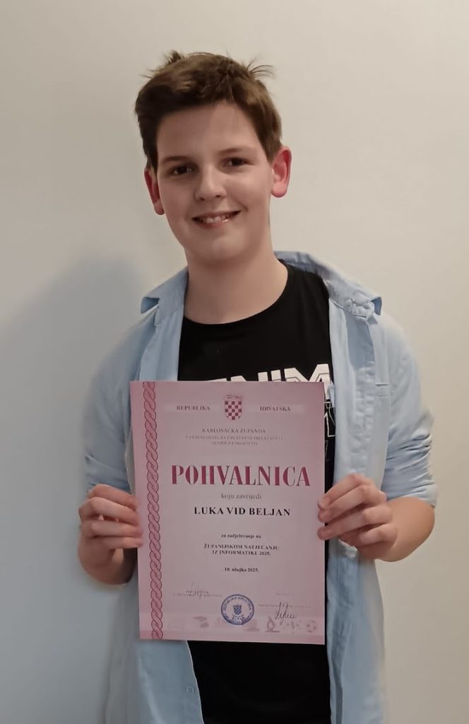 Iz Prve osnovne škole Ogulin učenik 5.b razreda Luka Vid Beljan je osvojio je odlično drugo mjesto u kategoriji Digitalne kompetencije te mu je prvo mjesto promaklo za 0,06 bodova. U istoj kategoriji se natjecala i Sara Jandrijević iz 5.b. U kategoriji Digitalne kompetencije Erika Delić, učenica 6.b razreda, osvojila je 4. mjesto. U kategoriji Osnove informatike u konkurenciji osmih razreda Gabriel Teo Kaurić iz 8.a osvojio je prvo mjesto, a sudjelovao je još i Lovro Brozović (8.a). U kategoriji Primjena algoritma – Python u kategoriji osmih razreda Gabriel Teo Kaurić osvojio je prvo mjesto. Mentorica učenicima bila je Ivana Kurelac.