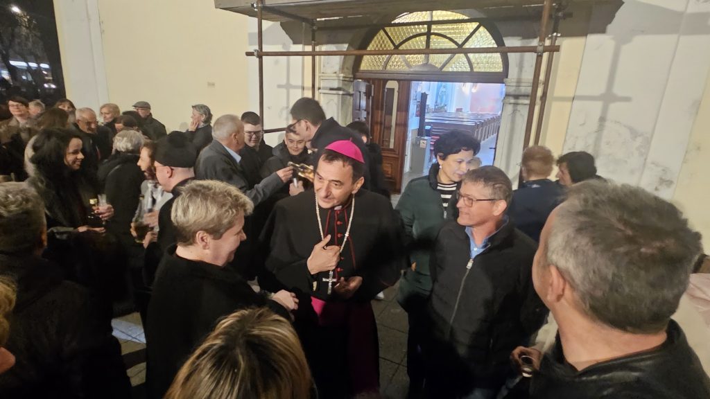 Nakon mise biskup Medo se zadržao u kraćem druženju s vjernicima ispred crkve.