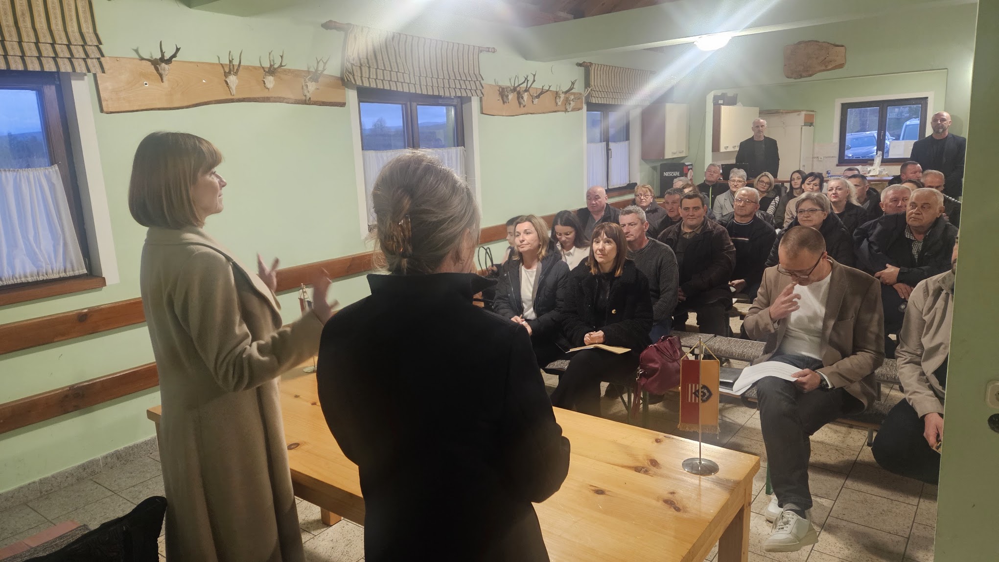 U prostorijama Lovačkog društva Srnjak u Tounju održan je u četvrtak 13. ožujka susret Karlovačke županice Martine Furdek Hajdin, zamjenice Vesne Hajsan Dolinar kao i više županijskih pročelnika s mještanima Tounja. Cilj je bio da se građane informira o stvarima koje su do sada učinjene kao i da se istaknu probleme koji građane najviše tište.