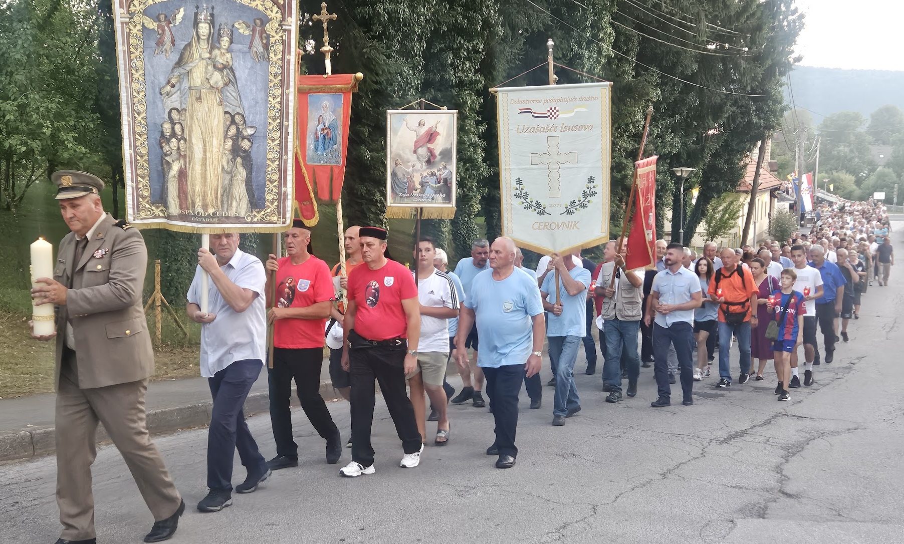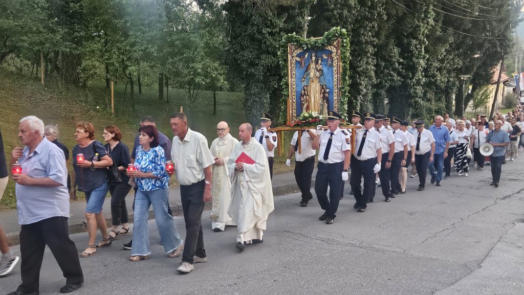 Misu uočnicu blagdanu Velike Gospe u svetištu Gospe od Čudesa u Oštarijama predvodio je generalni vikar Gospićko-senjske biskupije dr. Richard Pavlić. Prije mise održana je procesija od Vatrogasnog doma, preko pješačkog Marmontovog mosta do ostataka nekadašnje velebne katedrale unutar čijih zidina je održana misa. Koncelebriralo je 12 svećenika Ogulinskog dekanata i ostalih župa biskupije na čelu sa čuvarem svetišta vlč. Marijom Vazgečom, ogulinskim dekanom Mariom Kraljem i vlč. mr. Ivanom Stošićem iz Rijeke, dok je više svećenika ispovijedalo. Liturgijskim marijanskim napjevima i litanijama tijekom procesije misu je animirao združeni zbor više župa uz orguljsku pratnju Franje Puškarića i asistenciju Domagoja Šlata. Ove godine se na misi uočnici okupio rekordna broj vjernika u porcesiji i misi, po slobodnoj procjeni preko tisuću. Među njima bilo je puno hodočasnika koji su tijekom dana hodočastili iz Plaškog, Ogulina i Skradnika.