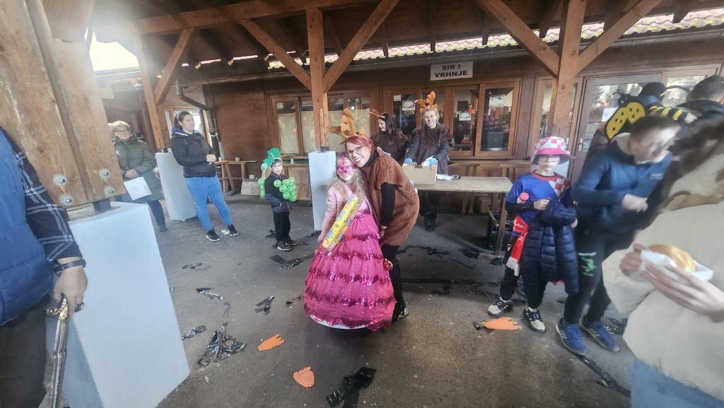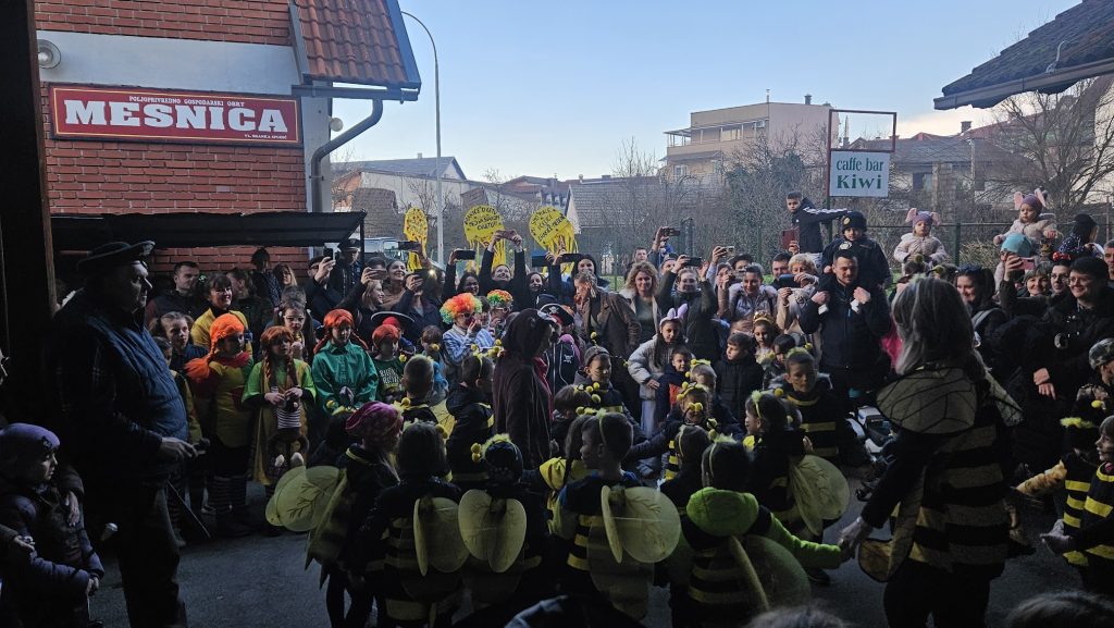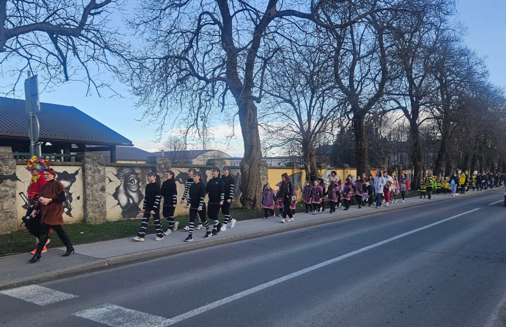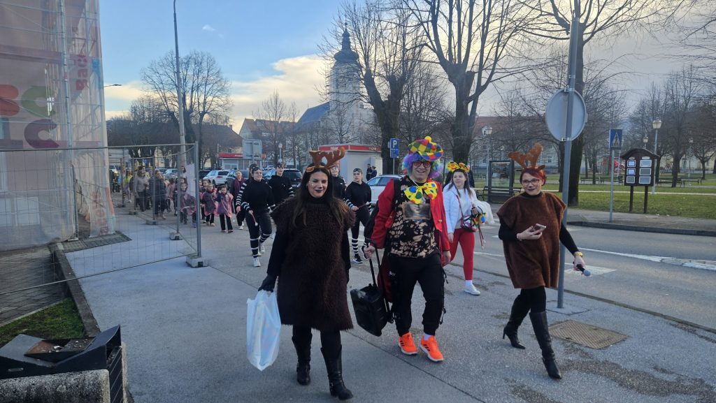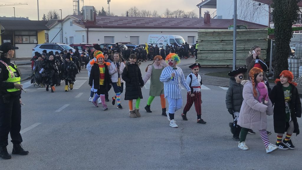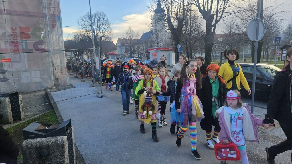 Maskirna kolona više stotina najmlađih krenula je od Prve osnovne škole Bolničkom i središtem grada do gradske Tržnice gdje su uz animaciju Mire pokazali svoja umijeća i gdje su proglašene najbolje skupne i pojedinačne maske uz čašćenje krafnama. Najbolja skupna maska su bile Pčelice a pojedinačne Gejša, Krinolina i Policajac.